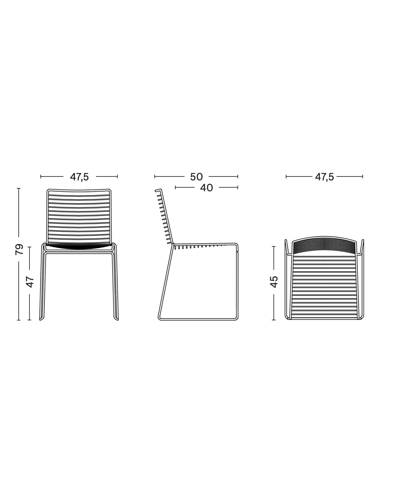 / The Hee collection features a weatherproof outdoor powder coating./ The chairs can be linked together in rows for conference use./ Stackable up to 15 pcs./ 11 mm powder coated solid steel bar with a two componentcoating; a primer and an outdoor powder coating which provides abarrier to corrosive elements making it suitable for outdoor use.
