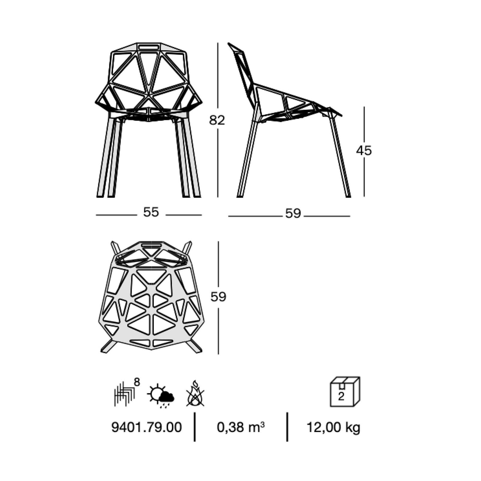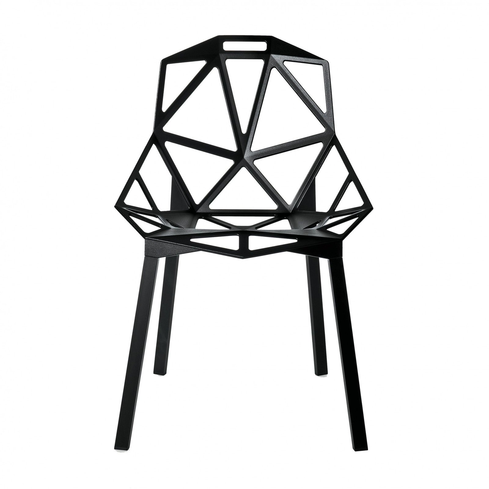 the stackable chair one was created in 2003 by the german designer konstantin grcic for the italian manufacturer magis. chair one not only looks cool, it is very practical and stackable up to 8 chairs.- Stackable chair, suitable for outdoor use.- Legs in polished anodised aluminium natural or black. Seat in die-cast aluminium, treated with sputtered fluorinated titanium and painted in polyester powder.Material: die-cast aluminiumDimension: w55 x d59 x h82 x sh45 cm