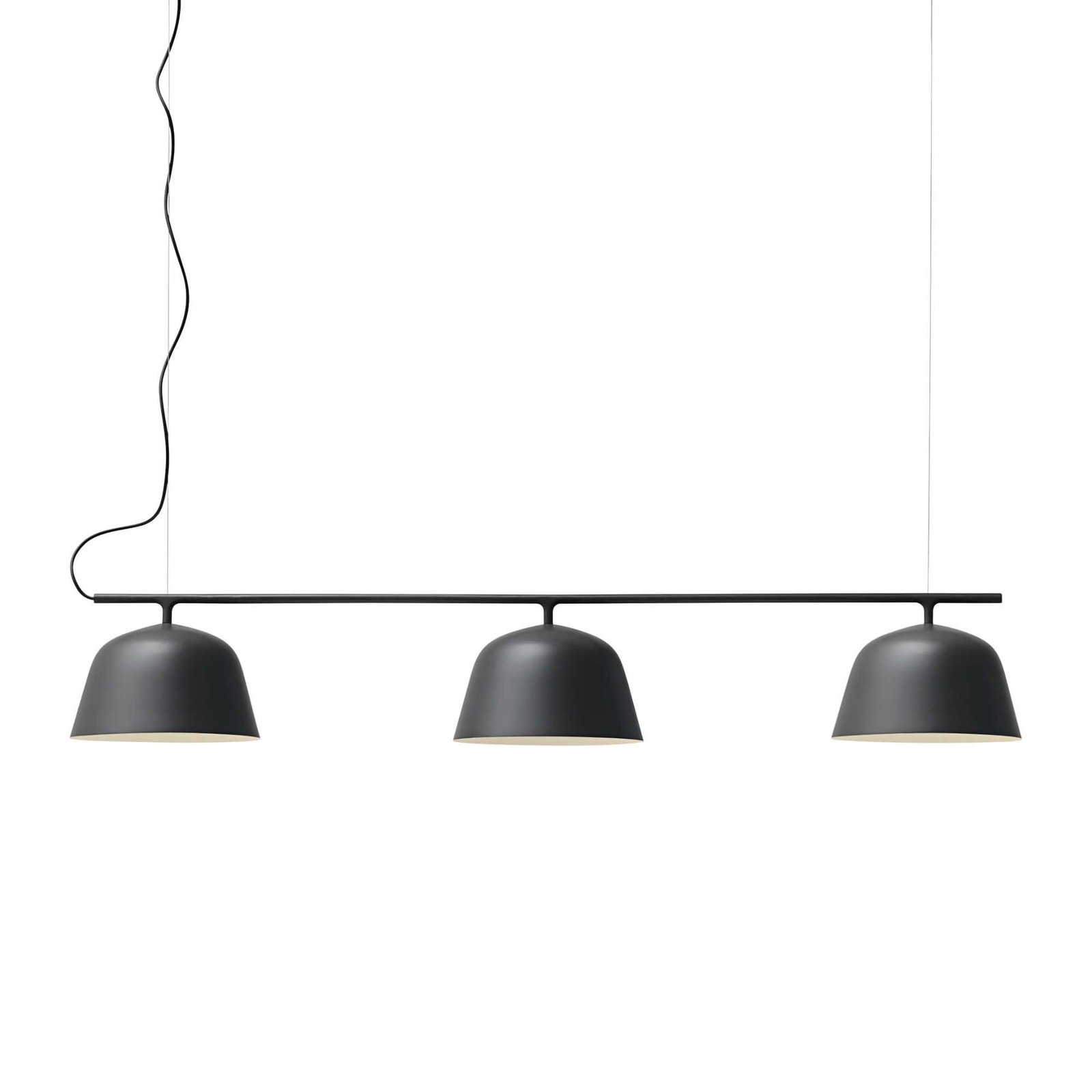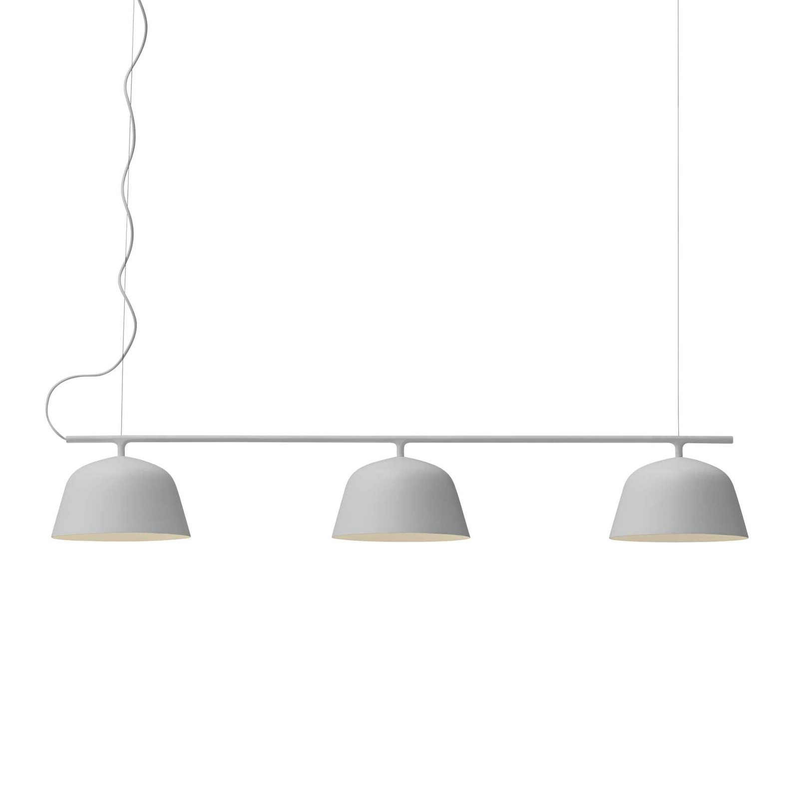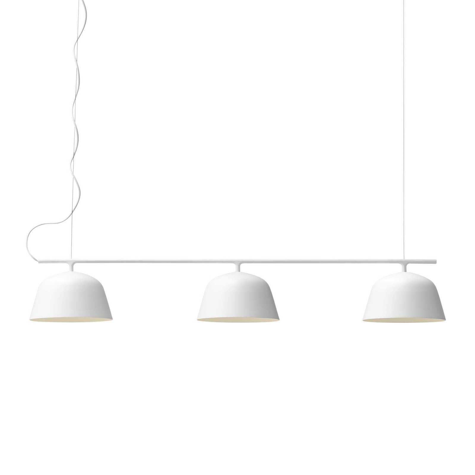 Rail from Muuto is ‘s fresh take on classic billiard table lamps. The minimalist design comprises a row of three simple shades. familiar from the pendant lamp. and a horizontal metal rail suspended by two steel wires. The thinness of the wires creates a fun illusion of a floating lamp. and the white interior of the spun aluminium shades reflects light in a pleasant manner. Rail makes an excellent choice above any kitchen island. dining table and meeting table.