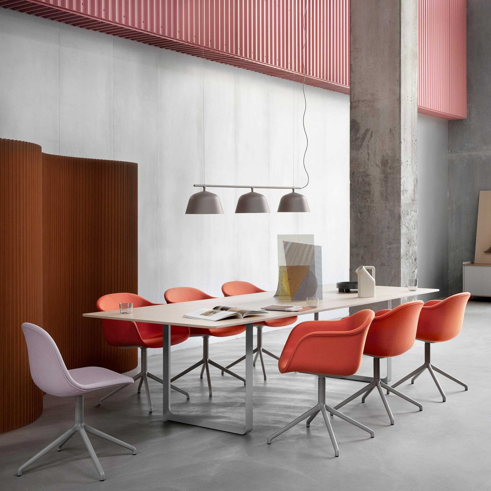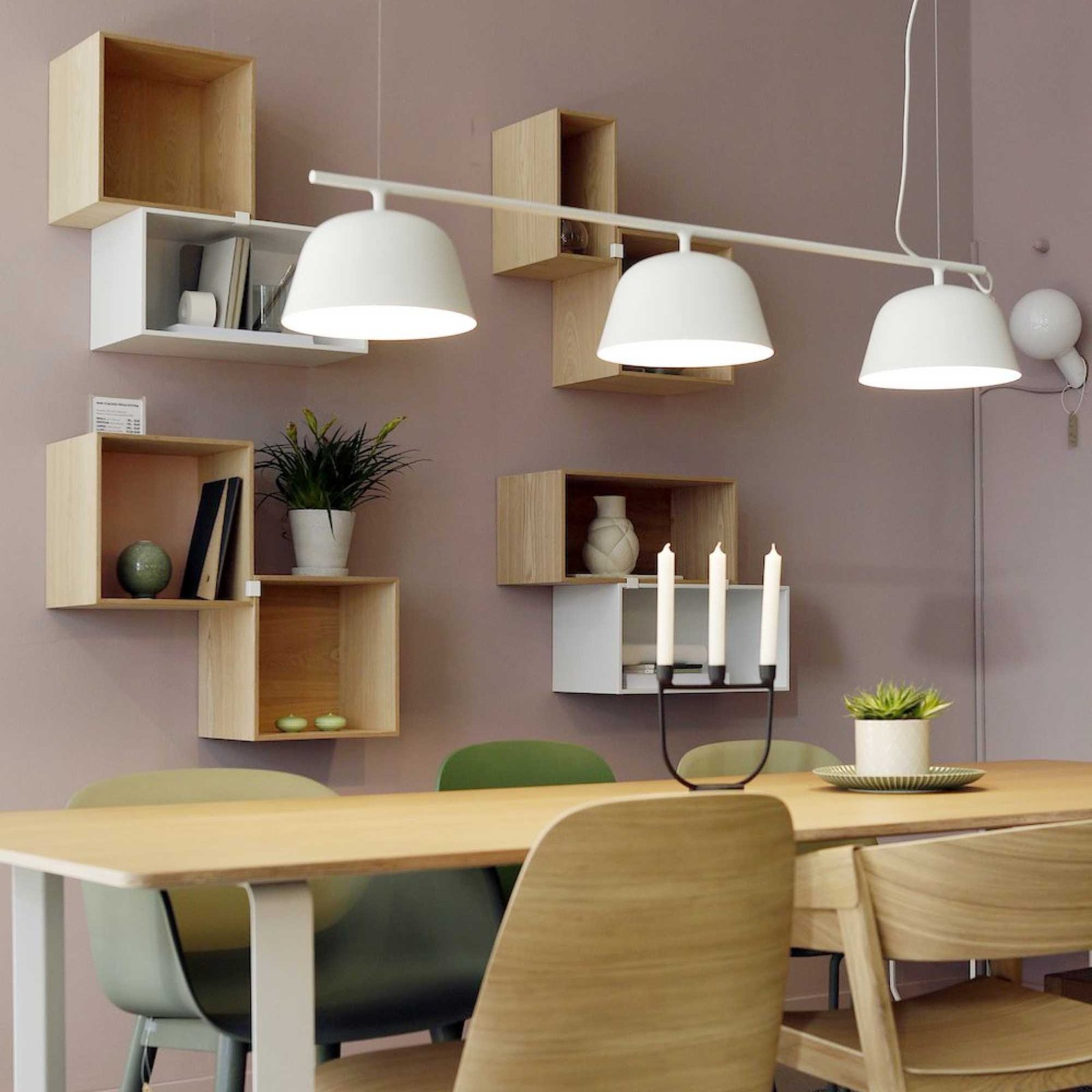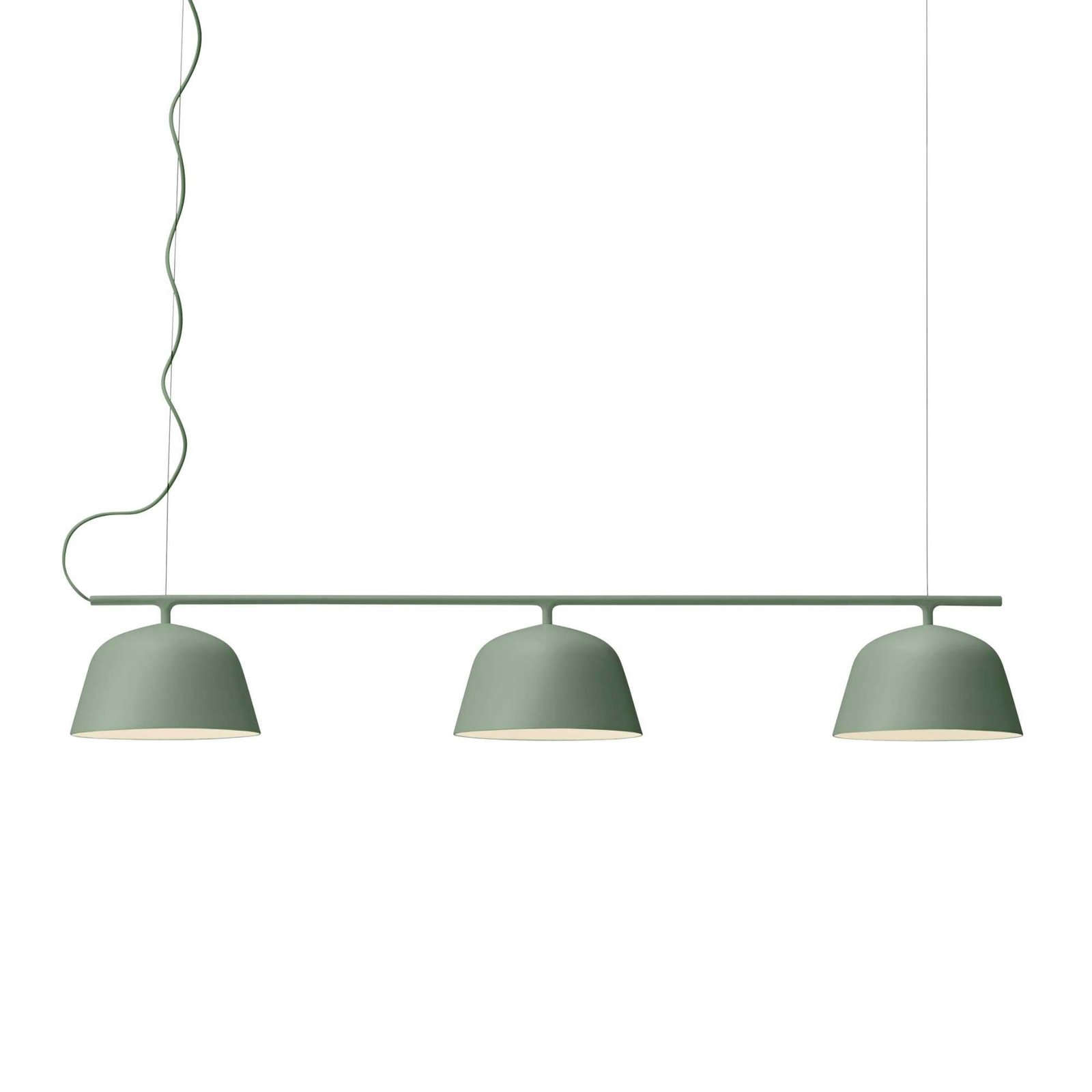 Rail from Muuto is ‘s fresh take on classic billiard table lamps. The minimalist design comprises a row of three simple shades. familiar from the pendant lamp. and a horizontal metal rail suspended by two steel wires. The thinness of the wires creates a fun illusion of a floating lamp. and the white interior of the spun aluminium shades reflects light in a pleasant manner. Rail makes an excellent choice above any kitchen island. dining table and meeting table.