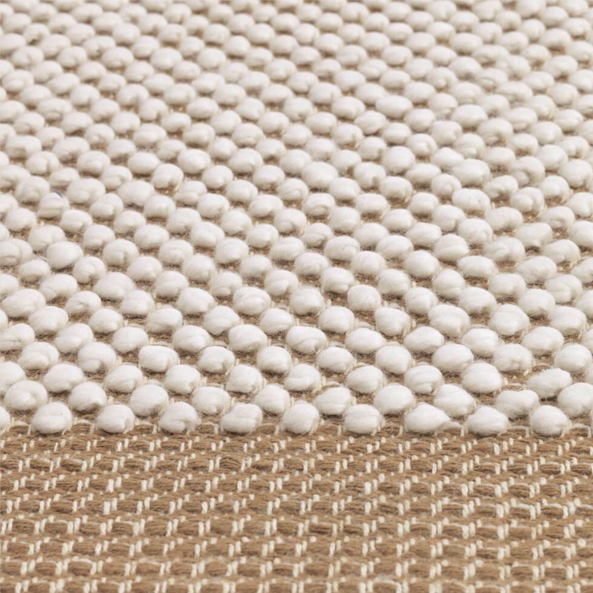 Material: 60 % New Zealand wool & 40 % Jute. The rug comes with a canvas backing pasted with synthetic latex which ensures that the rug lay smoothly on the floor.