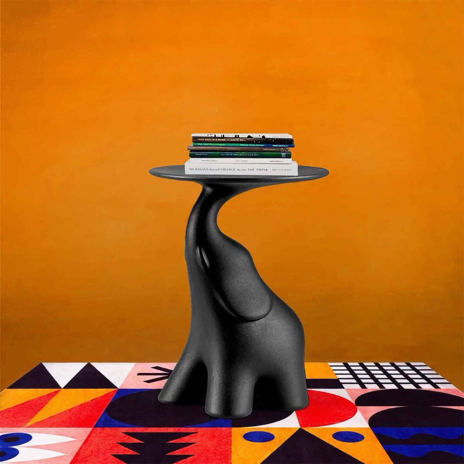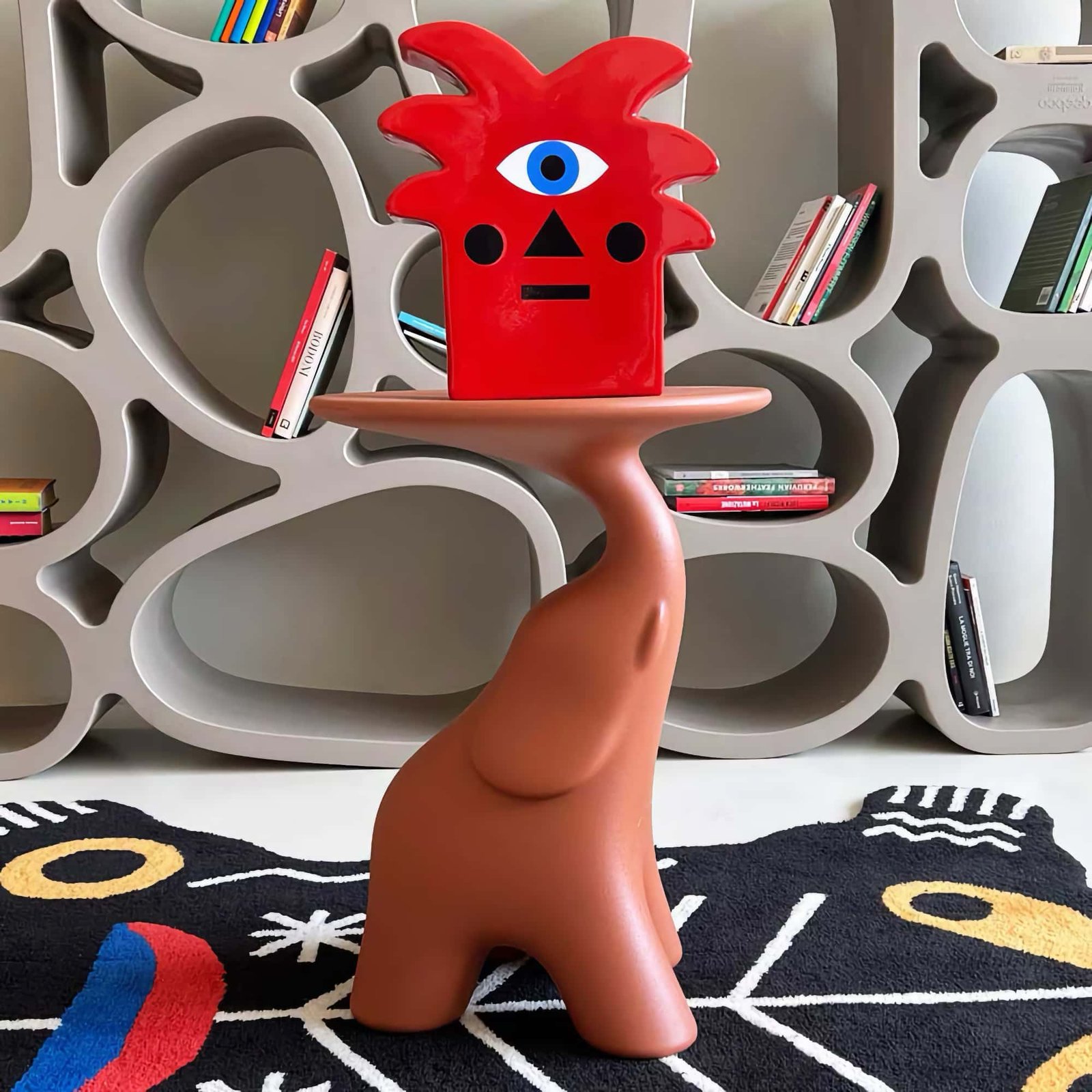 Designed by Stefano Giovannoni. Pako is a small and colourful side table. With its long trunk it holds a circular top that allows to place various objects on top. Available in multiple colours and gold metal finishing.