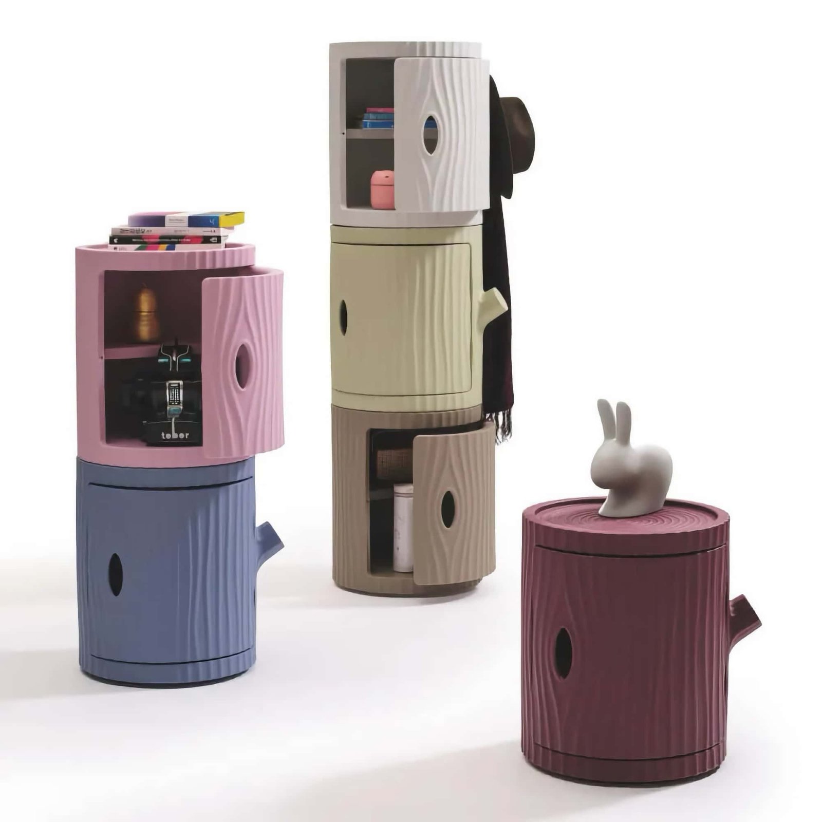 tree trunk. Made in recyclable polyethylene it serves as a storage unit offering a solution for