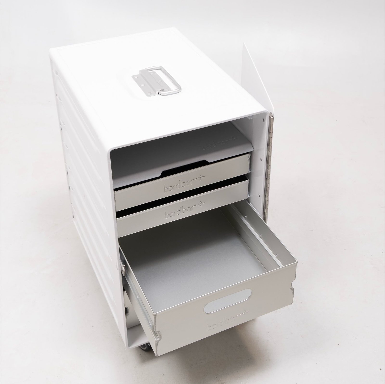 The bordbar box is an original box just like the ones found in the galleys of a plane. Light and still very mobile. Use it in your office. as a nightstand or simply as a rest table for the accumulation of life’s bits and pieces.