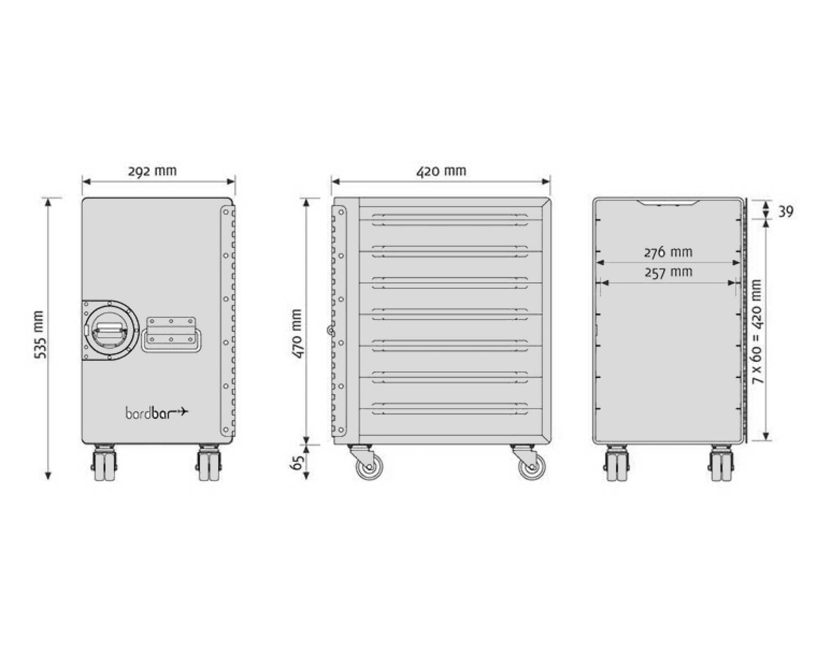 The Bordbar Box Trolley include following accessories: